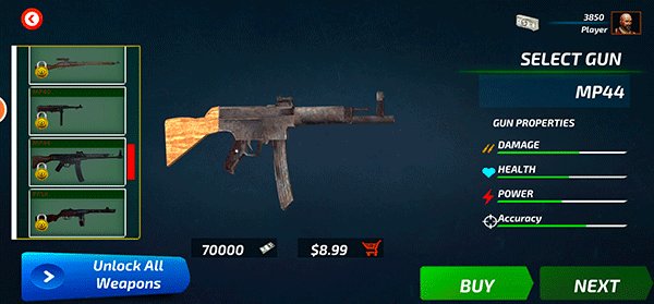 6、如需更换武器,点击“next”,找到更适合的装备。