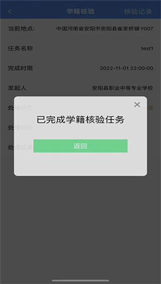 6、如果是在校核验的话,处理结果会是正常,否则显示异常或其他内容。