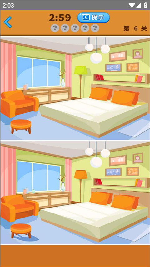 开始挑战第六关,在规定时间内找出两张图片中的不同之处。