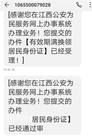 6. 另外,在身份证办理完成之后,系统会通过短信形式进行通知,届时请留意接收最终的通知消息。