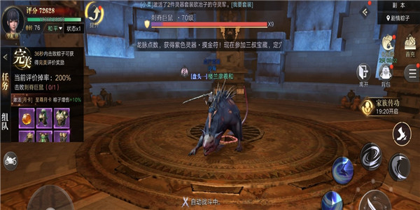 粽子这个副本中,玩家在挑战的过程中需要注意一点,那就是战斗时左侧系统会自动弹出一个时间提示。玩家如果在31秒内击败巨鼠王,那么可以得到完美的评分,获得额外的奖励。31秒结束后,降级为卓越之后是优秀,时间越长,击败巨鼠王后获得奖励也就越低。