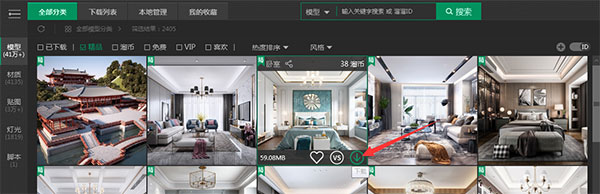 接着,在软件安装完成后,登录到溜云库,在这里选取所需模型和素材以供下载;注意:请先开启3Dmax软件,再回到溜云库执行任何操作。