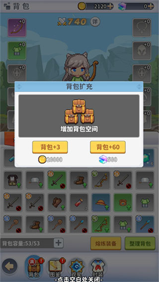 2、战胜怪物会掉落很多奖励与装备,因此背包可能就不够用了,此时需要消耗道具去把背包扩容