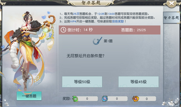 每日可参与3次,19:00-19:30为双倍奖励时间