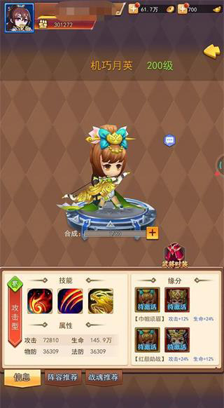 第四位是黄月英。黄月英和貂蝉一样,也是非常强力的辅助。小编建议在配队伍的时候在两位名将中选择一个使用。