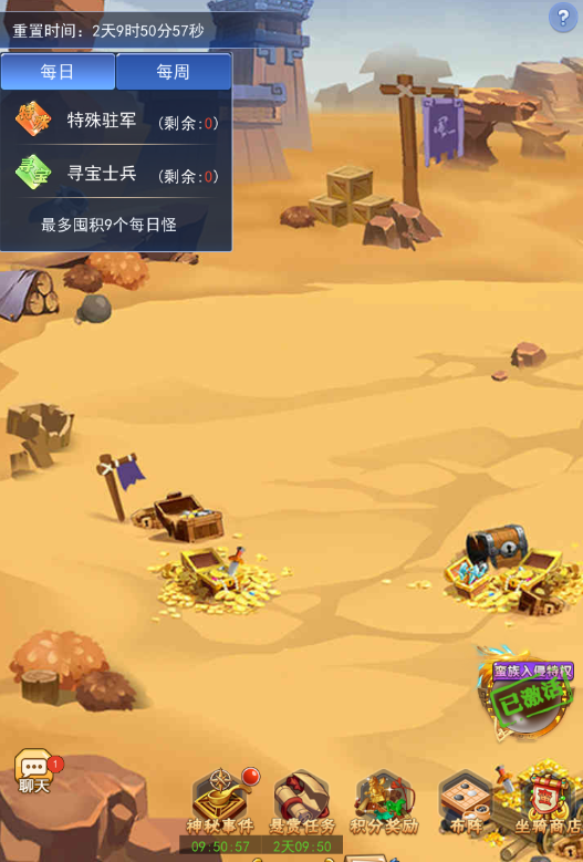 每周任务,每周一0点重置,地图会刷出17只怪物。
