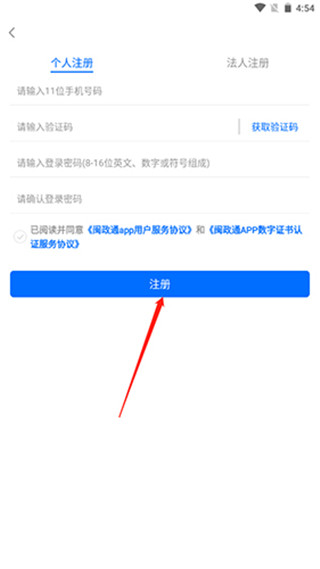 4、填写手机号、验证码和密码,点击“注册”完成操作。