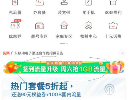 广东移动app获取免费流量的教程