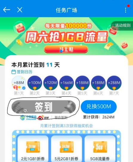 3、在周三和周六参与抢流量活动,错过时间就要等待下一轮。