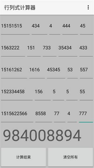 行列式计算器软件是一款专为方便行列式计算设计的手机软件,具有简洁清晰的用户界面。软件内嵌了多种算法,保证每次计算都精确无误,让用户直接体验到计算器的高精度和高效率。使用软件非常简单。用户只需在文本框内输入2至5阶的行列式,点击“计算结果”按钮,即可迅速得到准确的答案。此外,软件还具备一键清空功能,极大地提高了使用的便捷性。无论您是数学专业的学生、教育工作者还是对数学有兴趣的爱好者,行列式计算器软件都将是您学习和教学过程中的得力助手。这款软件不仅提高了计算效率,还减轻了复杂计算带来的负担。立即下载,享受数学计算的便捷与准确吧!