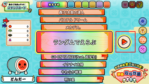 2、选择曲目:游戏内可滑动屏幕切换曲子。