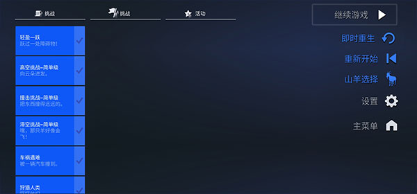 4、游戏包含丰富多样的任务,如拆毁巨羊阵、山羊城堡等,可在菜单中查看。