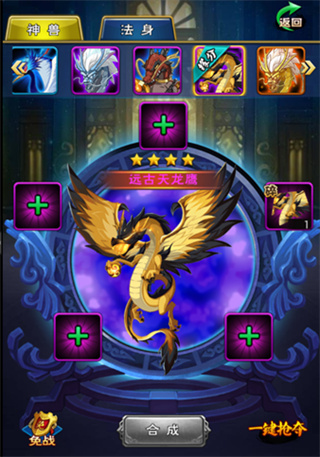 游戏中的夺宝玩法不仅仅是为了获取宝物。包括法神宝物和神兽宝物在内的宝物,对英雄的突破至关重要。此外,每个英雄都有对应的神兽缘分和法身缘分,集齐可以激活特殊属性。