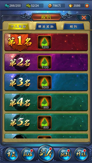 每个帮会成员都可以挑战帮派BOSS,并且可以获得丰厚的奖励,奖励分为个人奖励和帮派奖励,既看个人实力又看整个团队的配合,而奖励所获得的至尊灵液还可以在拍卖行中使用哦!