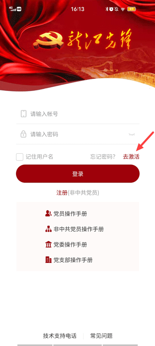1、首先打开软件,在注册登录页面选择“去激活”选项。