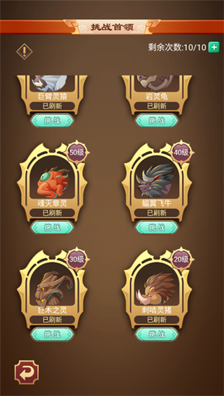 首领挑战初始次数为10次,使用次数后每小时恢复一次,也可使用元宝恢复次数。