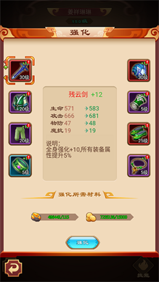 全身强化等级达到10级,20级等,可以获得额外装备属性提升。