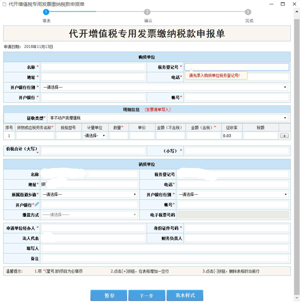 2、增值税专用发票代开预填功能不支持红字发票代开;