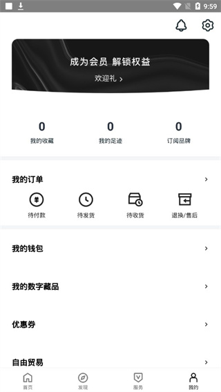 5、在我的个人区域,查看自己的藏品收藏、浏览足迹、订阅的品牌等信息。
