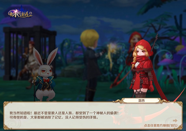 新手玩家在黑暗森林中醒来,开始他们的童话冒险之旅。遇见逃跑的白雪公主和神秘的声音暗示着即将开始的冒险。与公主并肩作战,体验第一次的战斗,并在神秘的“魔镜”——永歌森林的故事中探寻真相。