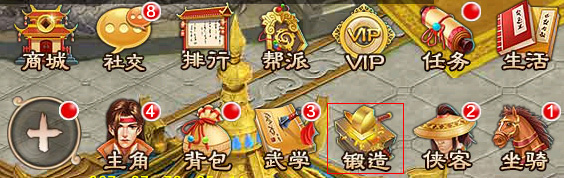 入口说明:在风云七剑手游中装备通过多种途径成长,每种方式有其特殊消耗和成长效果,但统一的入口是:左下角功能键-锻造