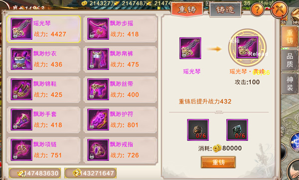 重铸提升装备潜在属性,获得额外属性和名字后缀。