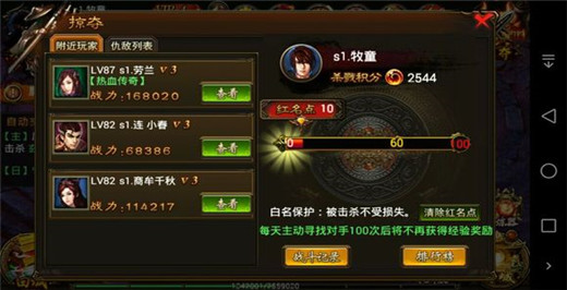 职业选好后,那就是打怪过图刷经验了,这个不多说,但一定要记住一定要打到自己能过图的极限,因为越往后经验越多,还有点别忘了,在野外屏幕右上方有个掠夺的图标,每20分钟可以抢圌劫一次别人,打劫成功可以获得大量经验、金币以及装备和宝石副本进入凭证碎片,这个是绝对很划得来,但是打劫次数多了会红名,红名后如被别人打劫了会损失背包里的物品,因此注意自己的善恶值再去打劫,最好别红名(红名可通圌过买消除红名药水消除)