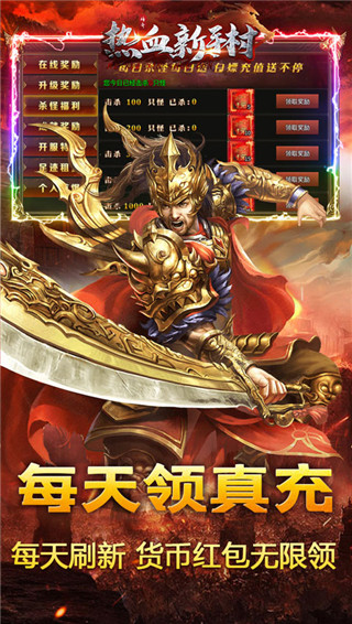 热血新手村高爆版是一款MMORPG传奇冒险动作手游,游戏以精美细腻的画质,真实的建筑人物建模,爽快的动作打击感,炫酷多彩的技能特效获得了许多玩家的喜爱。为了回馈玩家的支持,游戏推出了许多福利活动,完成七日签到即可领取顶级套装,各种华丽的时装更是免费派送。