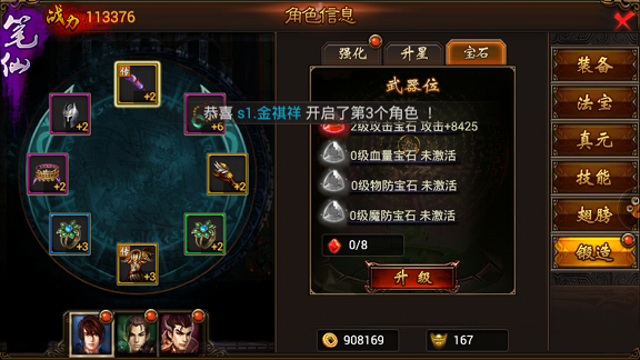 宝石升战力杀人越货于无形相对法宝、真元、技能、翅膀、升星、强化对战力的影响而言,宝石是唯一不会直接被人看出来的一种提升战力的方式。除宝石之外的所有提升战力的方式都会在各种排行榜上展现在其他玩家面前。
