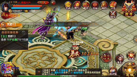 打124圌级怪物每小时所获得50件九十级装备用于圌炼器,从而获得强化石和金币。