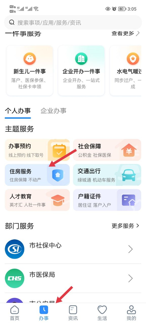 1、在郑好办app官方版内,选择办事栏中的住房服务功能。