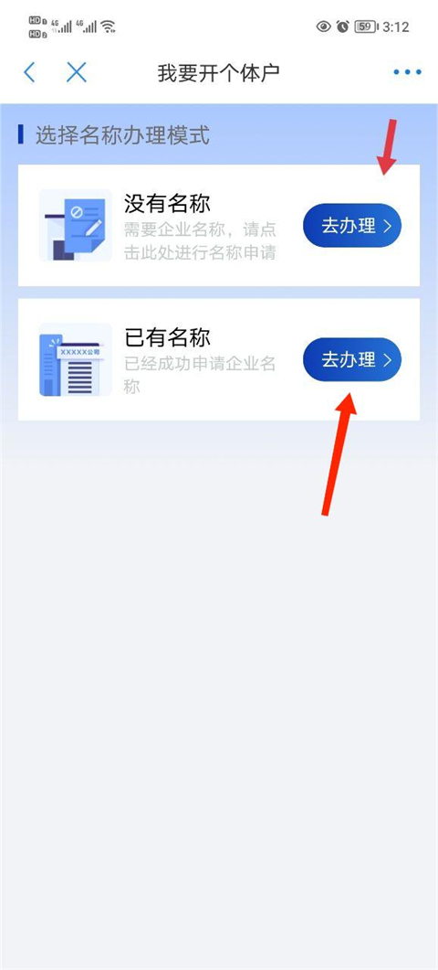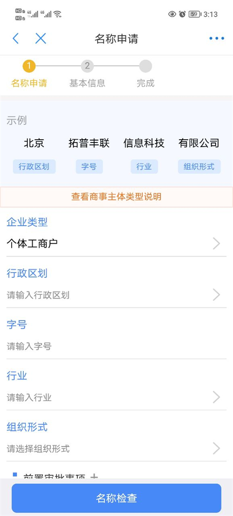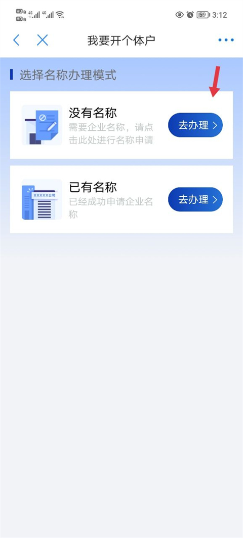7、名称办理完成后,返回上一级,点击已有名称办理。