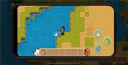 首先要获取一个钓鱼竿,这个钓鱼竿会在游戏的一开始赠送给玩家。如果背包里没有的话,可以去地图最下面的海边,海边有一个钓鱼店可以免费领。除了这种简易的鱼竿,还有一种高级的鱼竿,高级鱼竿和鱼饵都可以在海边的那个店购买,亦或者可以自己制作。