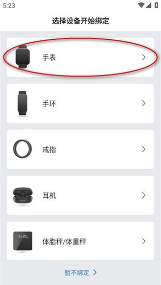 首先要将手表打开,然后启动zepp app,并登录账号,可使用微信登录。登录成功以后,会提示“选择设备开始绑定”,点击“手表”;如果是其他的设备,选择对应的即可。