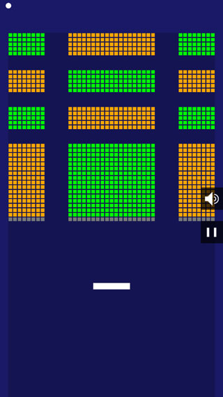 1、鬼畜式的打砖块游戏,玩起来非常满足,让人兴奋2、随着游戏进行,球会越来越多,让有强迫症的人看起来特别舒适