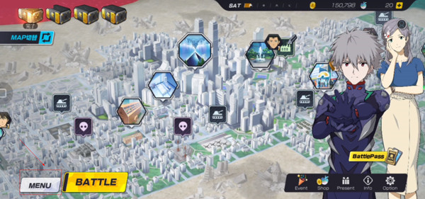 同时新世纪福音战士战斗领域正版采用了精致的全3D建模画面,以卡通渲染方式呈现。游戏高度还原了EVA机体的动作、武器效果及战斗表现力,角色的表情特写也相当细致。玩家操控EVA机体进行对战,采用即时卡牌指令方式,可从三张指令卡中选择,代表不同的武器装备。游戏中还包含了HP槽、COST计量槽、同步率值、驾驶员切换、辅助角色等丰富内容,为玩家提供了多样的游戏体验。