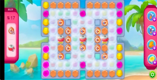 左边和右边请选择一方进行集中消除,效率比较快,能更好的扩大消除空间。在这里,推荐组合横向火箭,利用横向火箭一步收集三个蒸汽锅。