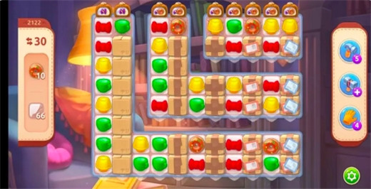 5,下图中的元素是『纸箱』,在纸箱旁边匹配图块可以将其消除。另外,那个白色的区域是瓷砖。这种白色的瓷砖必须要激活道具才能消除哦!