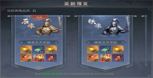 一:军团铸像1:各位主公可用铸像矶进行铸造增加铸造进度升品质;