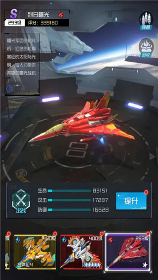 除了长空飞鹰之外,还有两架SSS级战机,黄金骑士和紫空魅影。前者自带18点爆伤,后者则是突袭旋风的Pro版本。