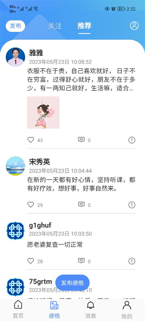 4、【情感感悟】不仅关注身体健康,还注重心灵的滋养,随时在情感驿站中记录情感变化、人生感悟等;