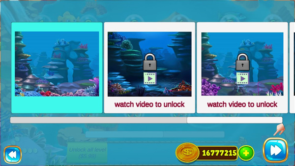 v2.3版本一款经典的大鱼吃小鱼的游戏,在游戏中,会有形形色色大小不一的鱼儿在深海中游荡,需要玩家控制小虎鲸鱼吞掉比自己小的鱼,同时躲避比自己大的鱼,以此获得更多的分数以及金币。玩家获得的金币可以用来兑换水族馆里的鱼儿以及深海装饰品。通过游戏,培养了玩家乐观进取的精神。