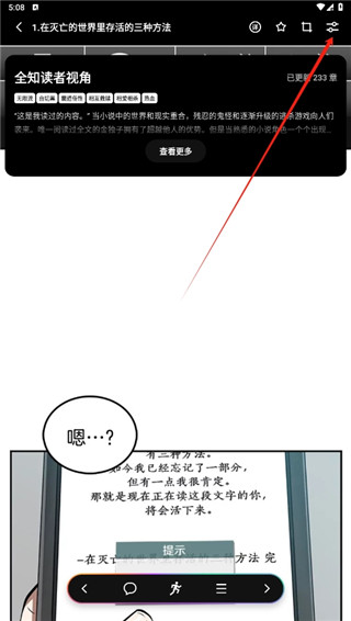 2、随后点击阅读界面的任意一处,点击右上角的图标