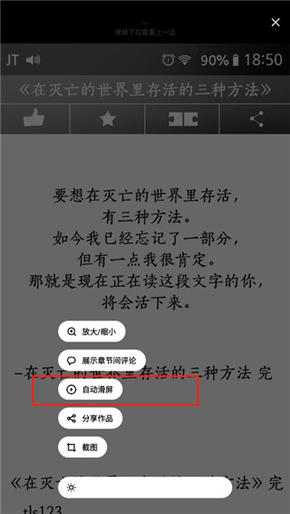 3、随后开启自动滑屏功能