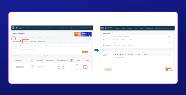 (1)发布商品:登录GSP→管理全球商品→选择商品→操作“Edit(编辑)”→点击“Publish(发布)”→发布成功 (*必做)