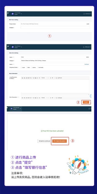 当店铺审核通过后,商家朋友们即可上传发布产品,开始运营店铺操作: