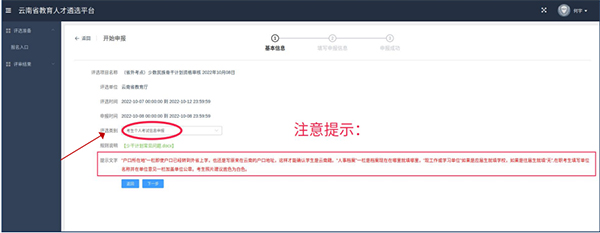 重要提示:根据考生情况选择不同的评选项目进行申报。