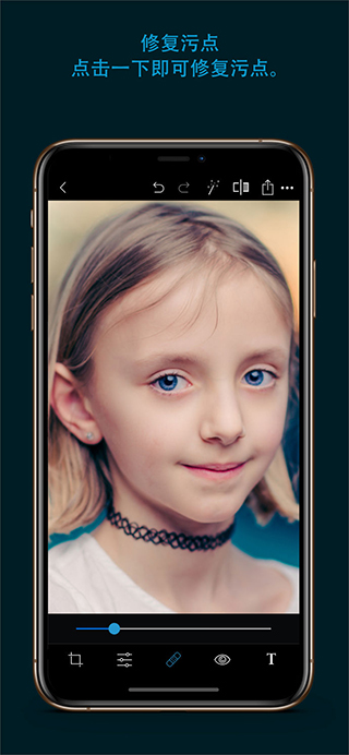 1、自动增强工具:在屏幕顶部可见蓝色的自动增强工具(魔法棒图标),它会自动调整照片的光线和颜色。