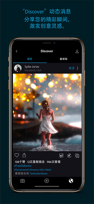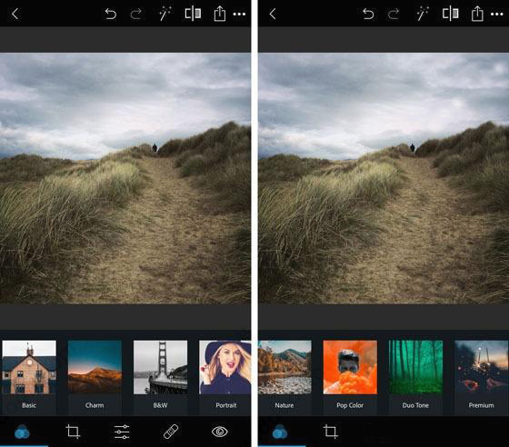 快速改变照片外观和氛围的单击式滤镜,包括颜色,曝光和清晰度的变化。