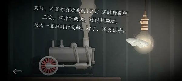 解谜步骤:点亮灯泡,旋转车轮,发现提示文字。这些文字是玩家2的解谜提示。
